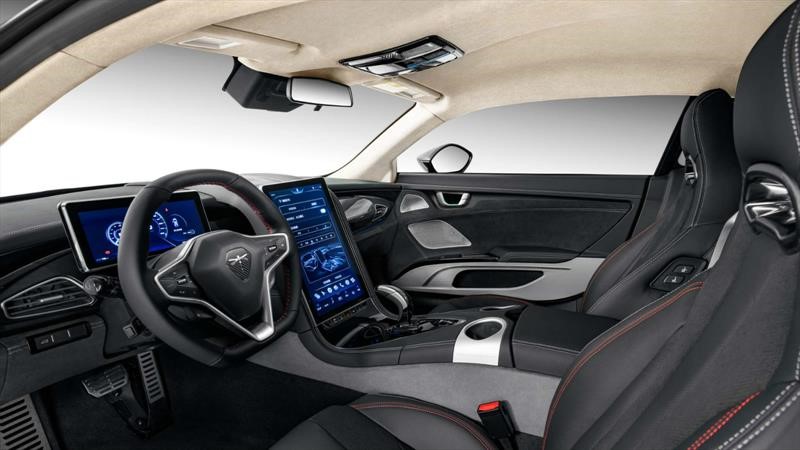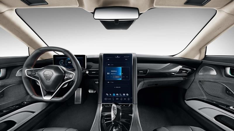 Ya en el interior del Qiantu K50, se puede encontrar una pantalla central que proporciona la configuración del vehículo, así como asientos deportivos en Alcántara con calefacción.