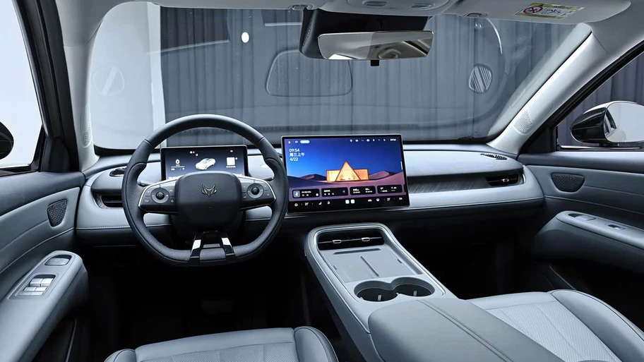 El interior, así como el exterior, es muy similar a lo que hoy entrega la industria china, con dos pantallas principales, una bandeja para recargar dos celulares y una calidad percibida lujosa, pero moderna y contemporánea. Es minimalista, pero más acogedor que otros autos con líneas más afiladas. El volante proviene de otros modelos de BAIC y cuenta con botones reales para manejar las funciones principales del auto.