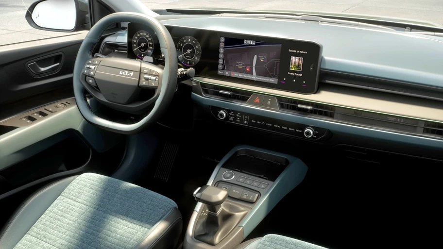 En el habitáculo, Kia actualiza la experiencia de conectividad con una pantalla táctil de hasta 12,3 pulgadas (para Vibrant, las otras versiones emplean una unidad de 8"), panel de instrumentos digital TFT de 4 pulgadas, compatibilidad inalámbrica con Apple CarPlay y Android Auto, sistema de sonido de seis parlantes y dos puertos USB. Según la versión, se ofrece aire acondicionado manual o automático con salida trasera, volante ajustable en altura y profundidad, tapicerías en tela o combinadas, además de volante y palanca en cuero para la versión Vibrant.