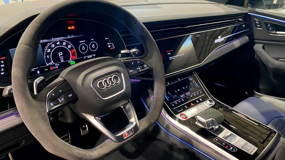 La estrella del RS Q8 Performance es su tren motriz. Bajo el capó se encuentra el conocido bloque V8 de 4,0 litros TFSI biturbo, apoyado por tecnología MHEV, que entrega 632 hp y un descomunal torque de 850 Nm disponible entre 2.300 y 4.500 rpm. Asociado a una transmisión Tiptronic de ocho velocidades y al sistema quattro con diferencial deportivo, este SUV alcanza los 100 km/h en solo 3,6 segundos y está limitado a 250 km/h.